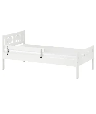 Cama infantil de IKEA, ideal para habitaciones de niños. Su diseño es sencillo y funcional. - Color blanco. - Incluye barrera de seguridad y somier