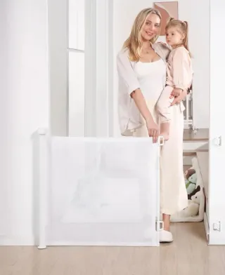 Barrera de seguridad para el hogar, ideal para mantener a los más pequeños y a las mascotas a salvo. - Material de protección ambiental, estructura de malla. - Cierre de puerta de plástico, fuerte y duradero. - Seguro y ahorra espacio.