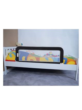 Barrera de seguridad Safety para cama de niño/a. Ayuda a prevenir caídas durante la noche. - Estructura de metal y malla. - Color negro y blanco. - Patas de soporte estables. - Extensible - Apenas se a usado 2 meses