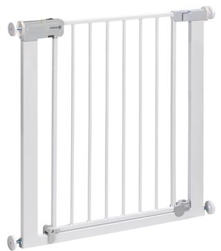 Barrera de seguridad Safety 1st Auto Close, ideal para mantener a los niños seguros en casa. Su diseño blanco se integra fácilmente en cualquier decoración. - Mecanismo de cierre automático. - Construcción robusta de metal.