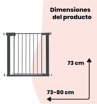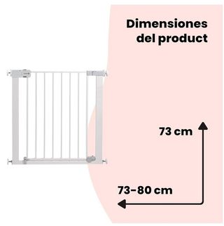 Barrera de seguridad Hauck Open N Stop, ideal para escaleras y puertas. - Altura: 77 cm. - Ancho ajustable: 75-80 cm. - Profundidad de la sección central: 50 cm.