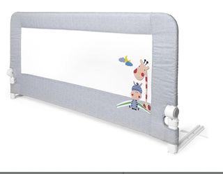 Barrera de seguridad portátil para cama infantil. Ayuda a prevenir caídas durante la noche. - Diseño plegable y fácil de transportar. - Malla transpirable. - Estructura de metal y plástico resistente.