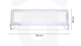 Barrera de cama Asalvo de 150 cm, ideal para la seguridad de los más pequeños. - Color blanco. - Mide 58 cm de alto. - Diseño 2 en 1.