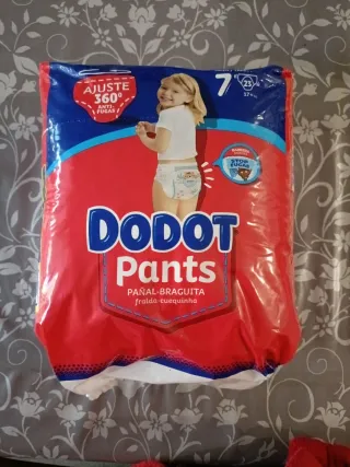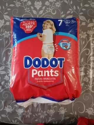 Paquete de Dodot Pants sin abrir, talla 7. 17 o más kg - Ajuste 360°. - Barrera Stop Fugas. - 23 unidades. Tengo 9 paquetes. Precio por paquete 9,99€. Precio de los 9 paquetes 80€.