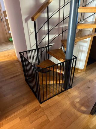 Protege a los más pequeños con esta valla de seguridad. - Barrera protectora para escaleras. - Estructura metálica negra. Varias formas posibles coordinando las piezas