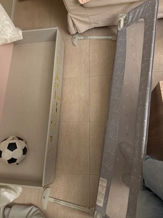 Barrera de cama 150cm Asalvo. Para bebés entre 18m y 5 años. Funciona perfectamente pero la tela está friccionado por los laterales.