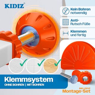 Barrera de seguridad de la marca Kidiz, ideal para proteger a niños y mascotas. Se instala fácilmente sin necesidad de taladrar. - Sistema de sujeción a presión. - Pies antideslizantes para mayor estabilidad. - Incluye kit de montaje.