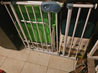 Barrera para niños safety first más extensión de siete centímetros. Para puertas de 80 con holgura. Cierre fuerte. cierre mascotas, perros y cachorros. Necesita pasarle un paño, manchas no oxido ni deformaciones.