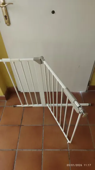 Barrera de seguridad, ideal para proteger a niños o personas mayores. Su diseño es discreto y se adapta a diferentes espacios. A recoger en Sevilla este - Estructura de metal blanco. - Malla de seguridad. - Patas ajustables para mayor estabilidad.
