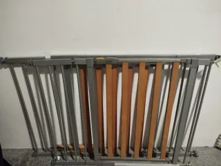 Se venden dos barreras de seguridad para niños, ideales para mantener a los más pequeños a salvo. - Incluye varios extensores de diferentes tamaños y accesorios según tipo de barandilla, para pared, etc - Estructura metálica resistente. - Diseño con barrotes de madera.