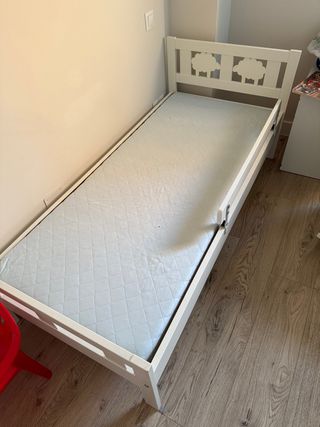 Cama infantil de color blanco, ideal para habitaciones de niños. Se vende sin colchón y sin barrera