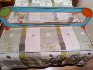 Barrera de seguridad para cama de la marca Jane, modelo de 140 cm. - Estructura de metal. - Tejido de malla transpirable. Tiene la tela rota por un par de sitios, pero no está en mal estado Tengo las instrucciones y la bolsa.