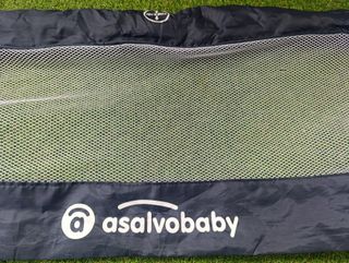 Barrera de seguridad para cama infantil de la marca Asalvo. - Plegable y fácil de instalar - Tejido de malla transpirable - Incluye funda y caja original - Medidas 150 x 43 cm - Peso 2,4 kg