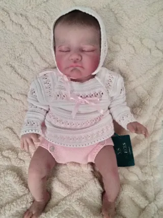 preciosa bebé🥰de vinilo siliconado con cuerpo de tela y peso sensación bebé, caida de cabeza y extremidades😊 pesa 2,581kg y mide 49cm aproximadamente🥰,si lo deseas le pongo latido de corazón, cama nido o acessorios....pregunta precios incluye chupete imantado, pendientes,ropa,sonajero ,pañal, caja decorada y certificado de nacimiento bonito regalo de cumpleaños,para niños o mayores... comunión, terapias de Alzheimer,autismo, alguna perdida, ayuda a reducir la ansiedad ♥️...hago envios rapidos y economicos!!🤗 Maria🌸🌸🌸( el bebé es el de la imagen)
