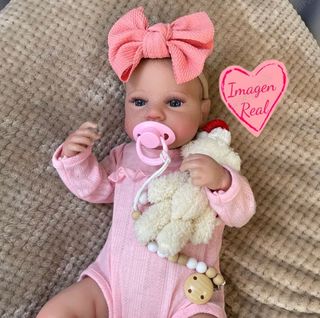 Precioso bebé reborn de silicona, con un tacto muy realista. - Fabricado en silicona de alta calidad. - Detalles muy cuidados en su rostro y extremidades. - Incluye diadema rosa y conjunto de ropa.