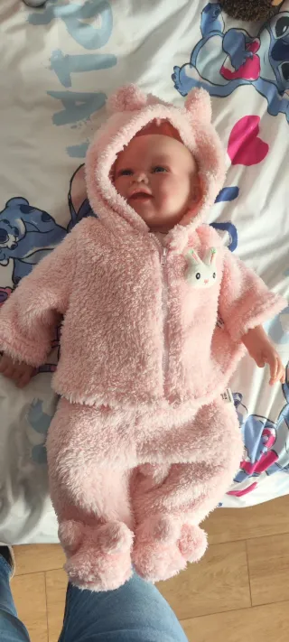 Muñeca realista de bebé. - Aspecto muy tierno y detallado. - Incluye gorrito rosa y conjunto de ropa. - Ideal para coleccionistas.