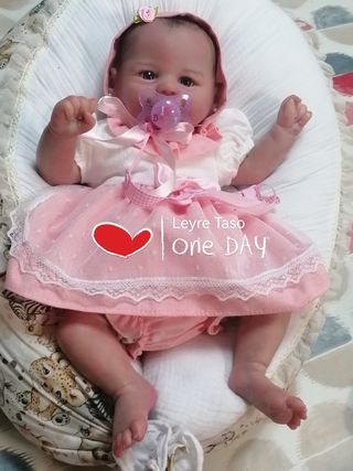 Natalia es una preciosa bebe de casi 3 kilos, precioso pelo castaño pintado ojos azules,, va como en las fotos, con Certificado de nacimiento y hoja de cuidados y pañales, chupetero personalizado con su nombre puede ser niña o niño. Lleva zapatos de charol.