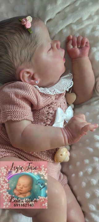 Preciosa bebé reborn hiperrealista. Pelo hiperrealista en 3 D. Traje arteaanal 3 piezas. Wassap 691162140 Pago por transferencia bancaria o bizum. Envio 10 euros con agencia 24 horas