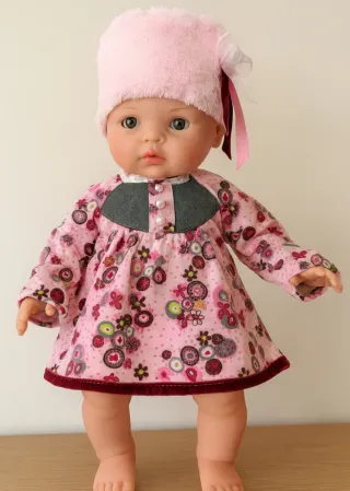 Conjunto original Paola Reina para muñeca bebé de 50 cm (compatible 48–52 cm). Incluye vestido, gorro y medias rosas. Nuevo sin etiqueta, nunca usado. Tejido rígido y acabado de calidad. Medidas: vestido largo 45 cm, pecho 21 cm, manga 27 cm desde el cuello. Medias: largo 11 cm, ancho pie 3,5 cm, ancho superior 5 cm. Apto para muñecas tipo bebé y reborn tamaño newborn. Pieza difícil de encontrar en este estado..