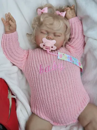 Muñeca Reborn realista, con gran detalle. - Mide 54cm y pesa 2.7kg. - Incluye chupete y biberón. - Ropa de bebé. - Muñeca Reborn de 44cm, pesa 1.7kg.