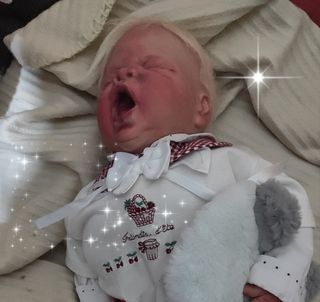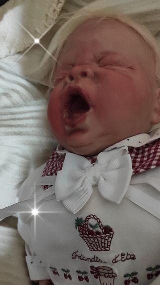 Muñeco bebé Reborn con aspecto muy realista. - Pelo rubio. - Ojos cerrados. - Expresión de llanto.