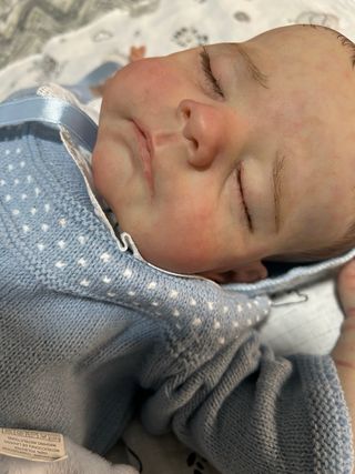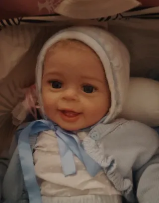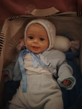 Precioso bebé reborn hecho a mano con gran detalle. - Ropita de punto azul. - Gorrito a juego. - Detalles realistas en la piel.