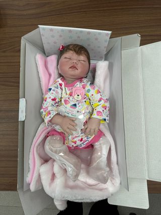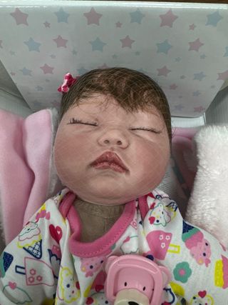 Muñeca bebé reborn con detalles realistas, ideal para coleccionistas o como regalo especial. - Cuerpo de silicona suave. - Pelo injertado a mano. - Ojos de cristal. - Incluye ropa y accesorios.