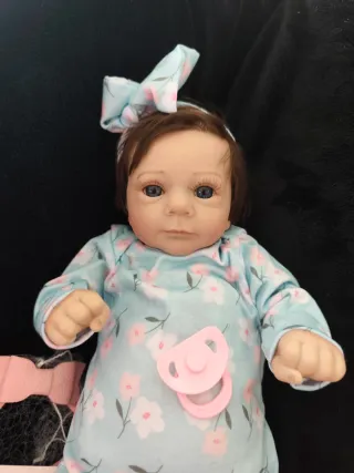 Precioso bebé reborn con detalles muy realistas. - Ropa de algodón con estampado floral. - Gorrito a juego con encaje. - Manitas y pies detallados.