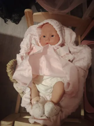 Preciosa muñeca bebé reborn, con un aspecto muy tierno y realista. Viene con un balancín rosa, ideal para mecer a la muñeca. Marca Antonio Juan - Muñeca de vinilo suave al tacto. - Balancín plástico resistente y fácil de transportar gracias a su asa. - Incluye un conjunto de ropa blanca y chupete. Para recoger en ubicación o enviar por wallapop a través de InPost escríbeme antes, por favor. Escríbeme para cualquier duda.