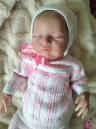 Preciosa muñeca reborn de 32 cm en perfecto estado. Se entrega con varias prendas de ropa para que puedas vestir a tu bebé reborn. - Muñeca de vinilo suave al tacto. - Incluye varios conjuntos de ropa para bebé. - Ideal para juego simbólico o colección.