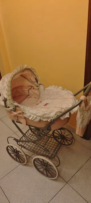 Este carrito de bebé vintage tiene un diseño encantador y detalles delicados. - Capazo con interior acolchado. - Ruedas grandes para un paseo suave. - Capota ajustable. - Cesta inferior ESTÁ CON VISIBLES SEÑALES DE USO. DR AHI SU PRECIO SIMBOLICO