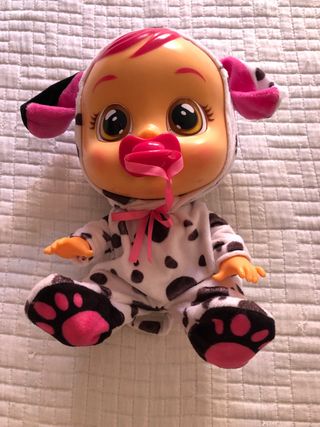 Bebe llorón Dálmata en perfectas condiciones. Sin casi uso. Con dos trajes adicionales; Reno y Dragón. Se regala mochila para llevarlo.