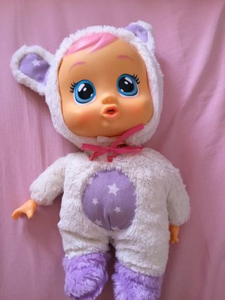 Muñeco bebé Llorón Dreamy Fantasy Unicornio. (Cry baby). Llora de verdad cargando agua en la cabeza. Se ha probado recientemente y funciona muy bien. Además emite otros sonidos, es muy tierno. Necesita dos pilas triple A (no incluidas). Tiene una marca en la oreja (ver última foto). También le falta la tapa de la cabeza pero no afecta a su funcionamiento, y no se ve por la capucha. Muy limpia. El pijamita se ha lavado a mano y secado al sol.