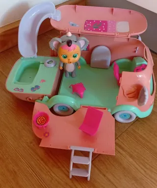 Furgoneta de juguete de los Bebés Llorones, modelo Koali. Ideal para recrear aventuras. - Diseño en color rosa y verde menta. - Incluye accesorios. - Puertas y techo abatibles.
