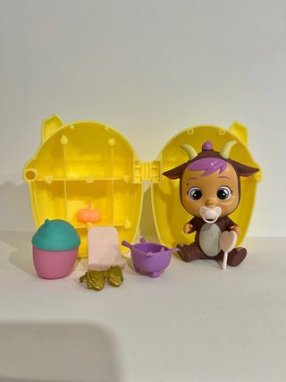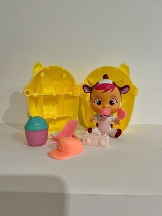 Figura de Bebé Llorón Lemu, lista para jugar. Incluye varios accesorios para complementar la diversión. Traído de USA. - Muñeco Bebé Llorón Lemu. - Accesorios variados. - Estuche de almacenamiento amarillo.