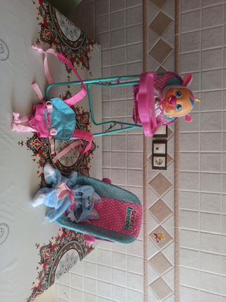Conjunto Bebes Llorones: Trona. Maxicosi. Traje de recambio Bebé llorón. Precio negociable.