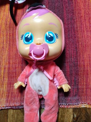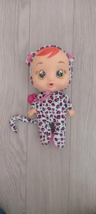 Muñeco Bebé Llorón Cry Babies con pijama de leopardo. Se rellena de agua y al quitar el chupete llora de verdad. Entrega en mano o envío