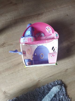 Preciosa casita para bebe llorón , ideal para jugar. Incluye un bebé llorón r. La casita está en buen estado y es perfecta para estimular la imaginación. - Casita de juguete con forma de seta. - Incluye una muñeca Bebe llorón y algunos accesorios . - Ideal para niños y niñas. Solo venta en persona