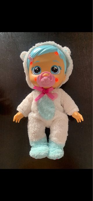 Bebe llorón, llora y se ilumina la cabeza y las lágrimas. Esta perfecto.