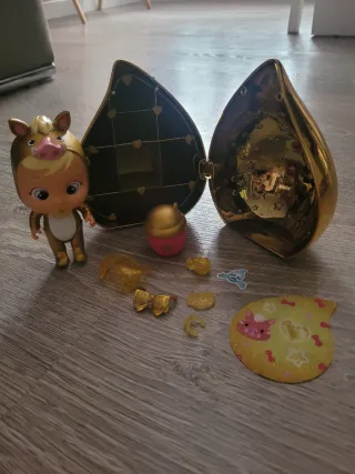 Set de juego de Bebés Llorones con temática dorada. - Incluye casita en forma de lágrima dorada. - Muñeca con traje de animal. - Accesorios variados.