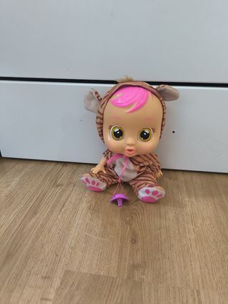 Muñeca de la marca Bebés Llorones. - Diseño de tigre. - Incluye chupete morado.