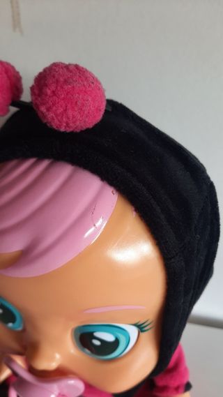 Bebé llorón en perfecto estado,tiene solo la falta en el pelito rosa que sale en la foto. trae un pijama aparte y tiene opcional el portabebés(5€)
