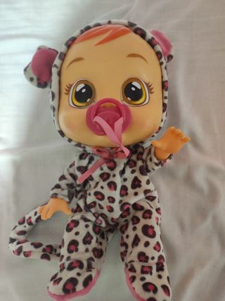 Preciosa muñeca bebé llorón, en perfecto estado. Es ideal para niñas y niños que quieran jugar a cuidar de un bebé. - Muñeca con un tierno diseño de leopardo. - Lleva un pijama de leopardo. - Tiene el pelo rojo.,está en perfecto estado,solo le falta la tapa,mirar foto,