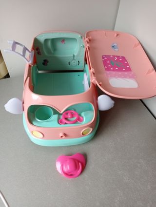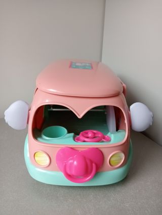 Bonita autocaravana de color rosa de los bebés llorones, con Jacuzzi con sonido. Utiliza 3 pilas AAA (NO INCLUIDAS). Está en buen estado pero está incompleto, lo vendo tal y como está en las fotos