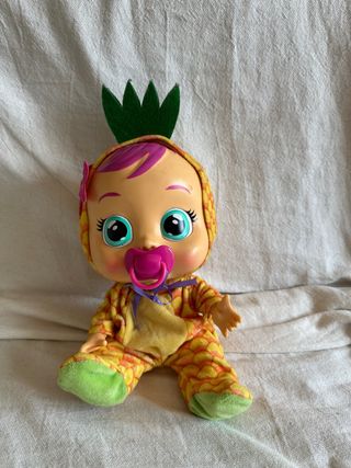 Bebé Llorón Pía - Lleva un bonito disfraz de piña. - Tiene chupete incluido. - Lloran de verdad