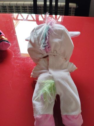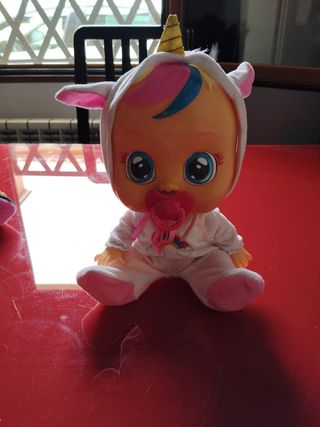 Muñeco bebé llorón con temática de unicornio. Incluye accesorios para jugar.. Cada disfraz tiene su chupete. Es original. Tiene otro disfraz de 🦋 mariposa - Pijama blanco con capucha de unicornio. - Chupete rosa. - Cepillo azul. - Disfraz de mariposa. Todo x 15e , entrega en mano y hago envíos
