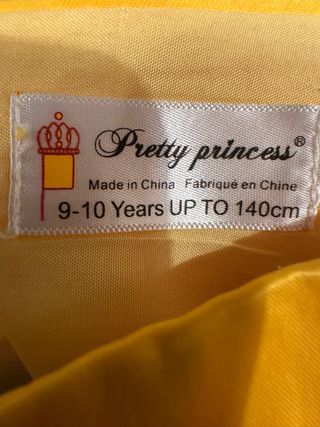 Disfraz de princesa Bella, inspirado en el clásico cuento. - Vestido amarillo brillante. - Diseño con volantes en los hombros. - Falda con drapeados y detalles. - Adorno en el pecho. - Talla 9-10 años,solo puesto en una ocasion 10 minutos.