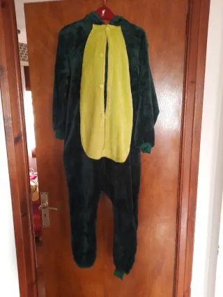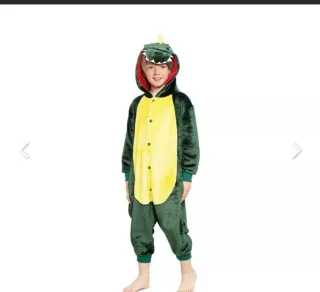 Disfraz de dinosaurio para niños, ideal para fiestas o para jugar. - Color verde oscuro con detalles amarillos. - Capucha con diseño de dinosaurio. - Cierre de botones en la parte delantera. Dispongo de 2 unidades