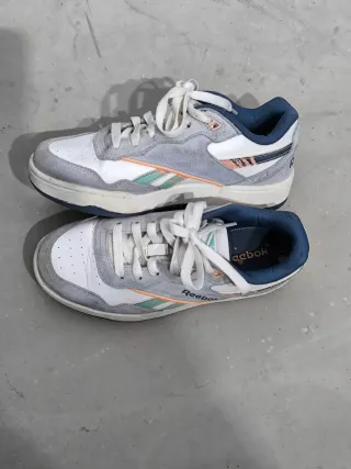 Zapatillas deportivas Reebok para niñ@s. Talla 34. Muy pocas veces puestas - Diseño moderno en tonos grises y blancos. - Detalles en color coral y verde menta. - Logo de Reebok en el lateral.