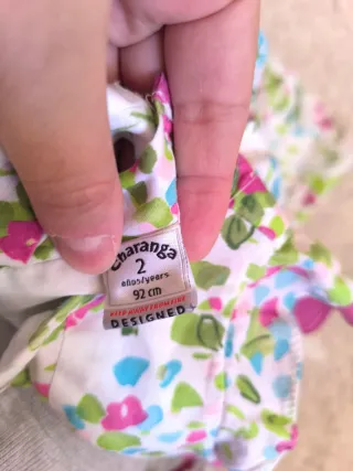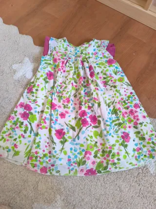 Vestido de bebé con un bonito estampado floral. Talla 2 años, de Charanga - Diseño con flores rosas, verdes y azules. - Mangas de sisa. - Cuello redondo.